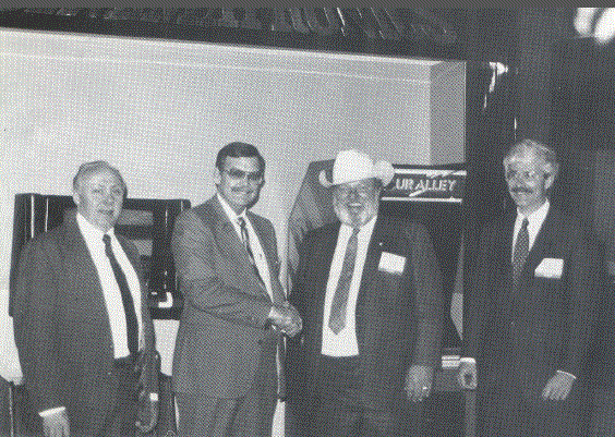 | Ken Anderson, Jim Pierce, Leland Cook, and John Rowe sealing the Tradewest deal |